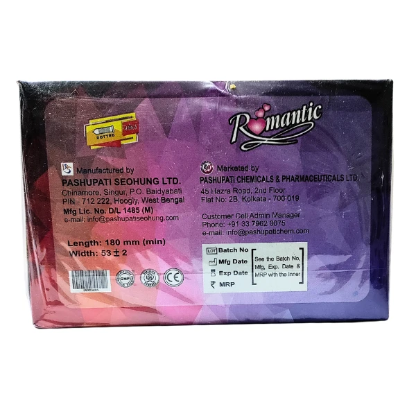 Indulge in enhanced pleasure and protection with the Romantic Premium Quality Dotted Condom. Designed for ultimate sensitivity, its dotted texture promises an exciting experience, ensuring both intimacy and safety.